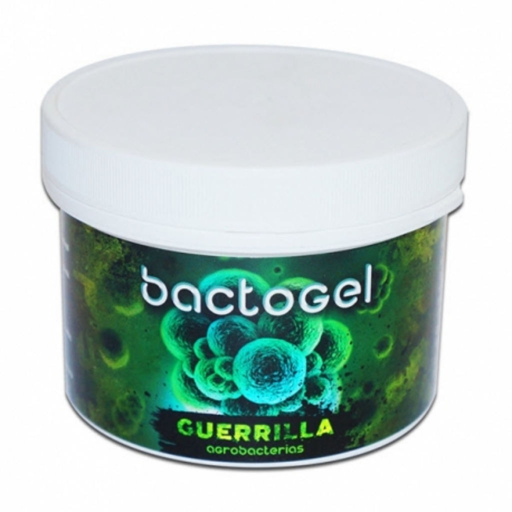 Agrobacterias Bactogel Guerrilla es una ingeniosa combinación de bacterias y polímeros diseñada para ayudar a tus plantas a sobrevivir y prosperar en entornos desafiantes, al retener eficazmente la humedad y los nutrientes en el sustrato. No solo ahorra agua, sino que también fortalece tus plantas y mejora su capacidad para resistir sequías.