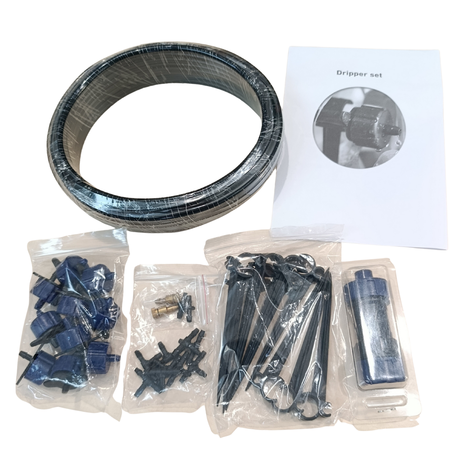 El Meliflor Sistema de Riego por Goteo (56 piezas) es la solución ideal para quienes buscan un sistema de riego económico, eficiente y fácil de instalar. Su formato compacto lo convierte en una opción perfecta para jardines pequeños, balcones, terrazas, huertos urbanos y macetas de interior o exterior.